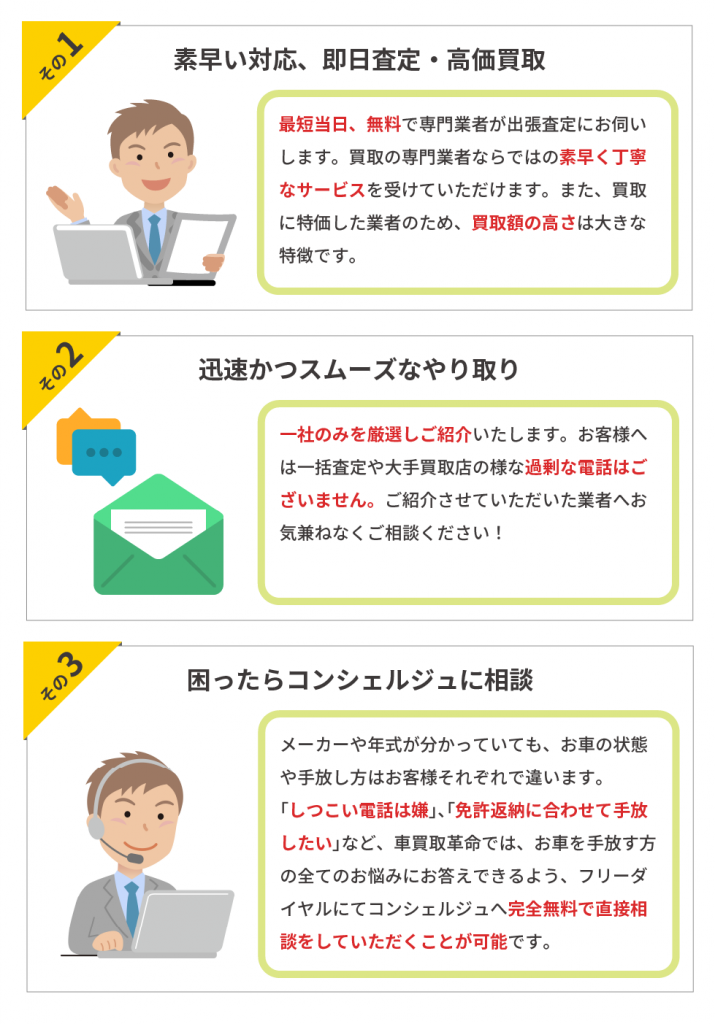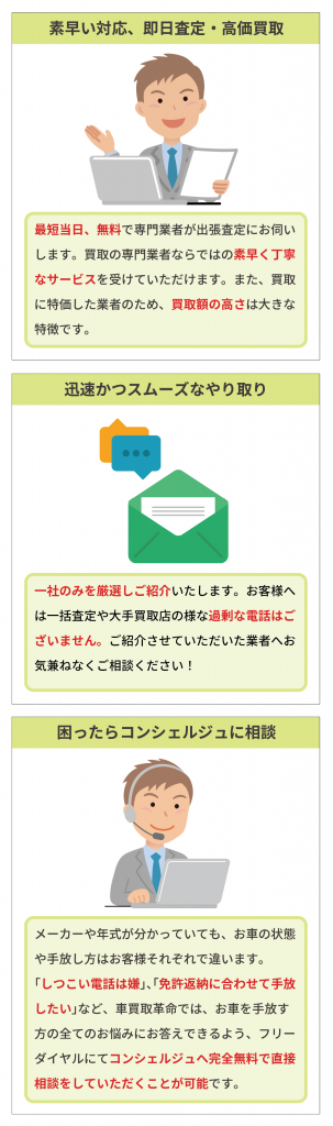 150 180 30車買取革命が選ばれる3つの特徴